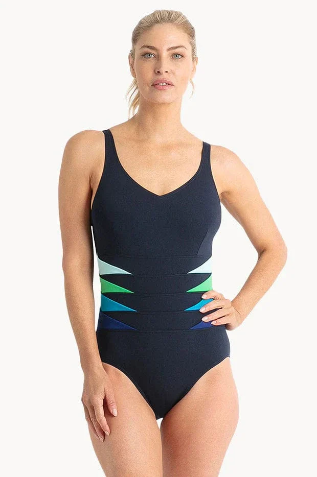 Poolproof Rozella Triangle Splice Tank One Piece is CHLORINE RESISTANT
